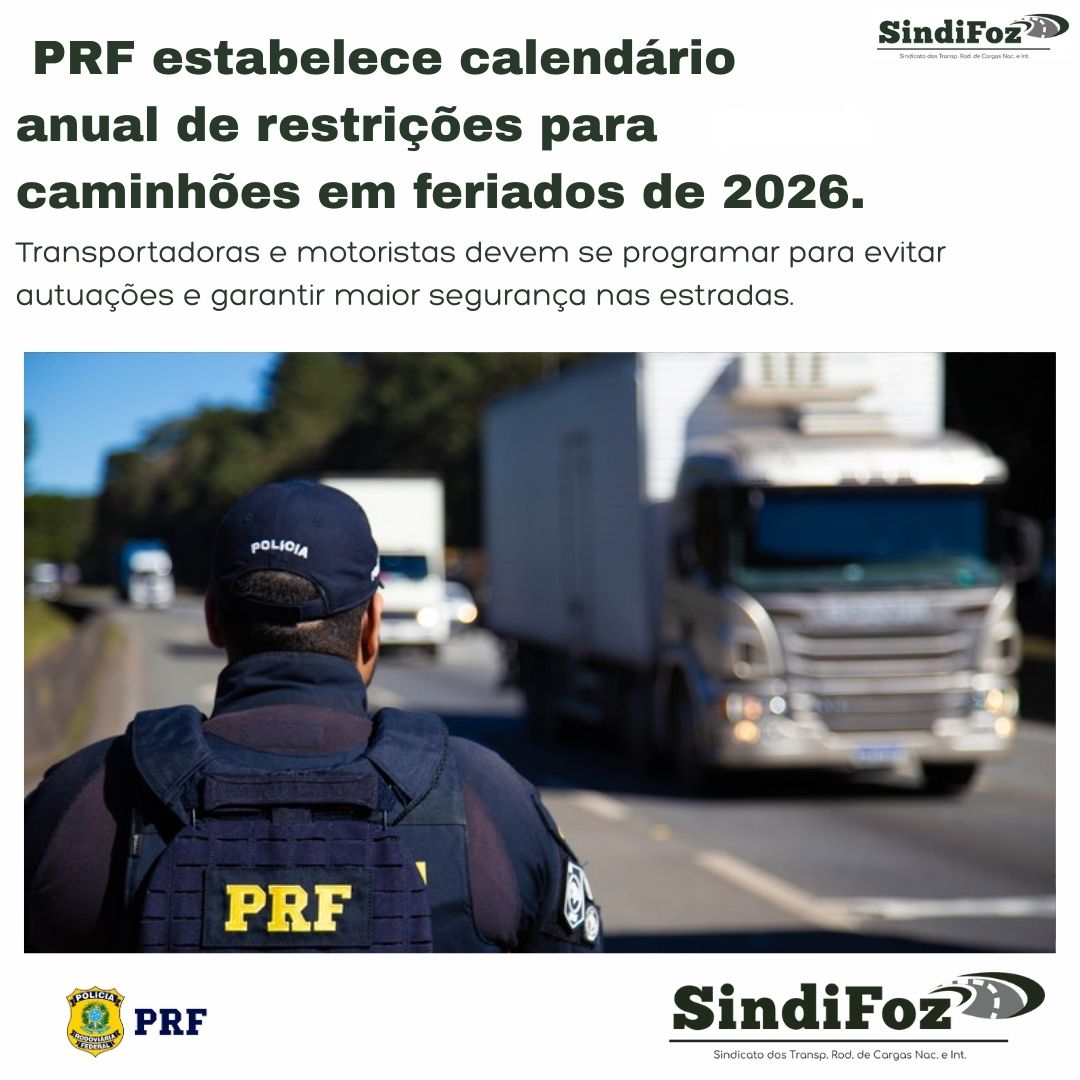 PRF estabelece calendário anual de restrições para caminhões em feriados de 2026.
