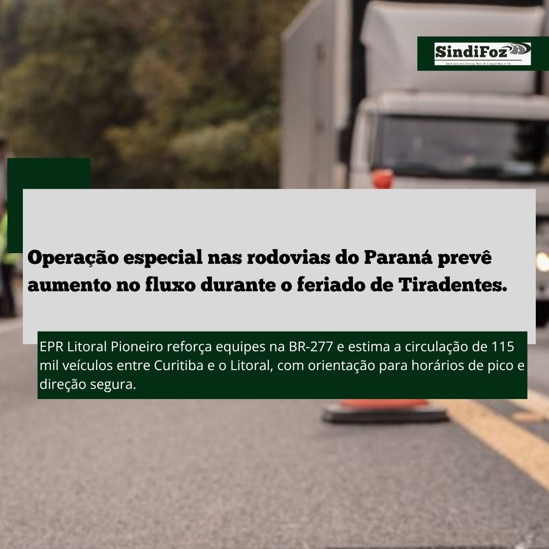 Operação especial nas rodovias do Paraná prevê aumento no fluxo durante o feriado de Tiradentes,