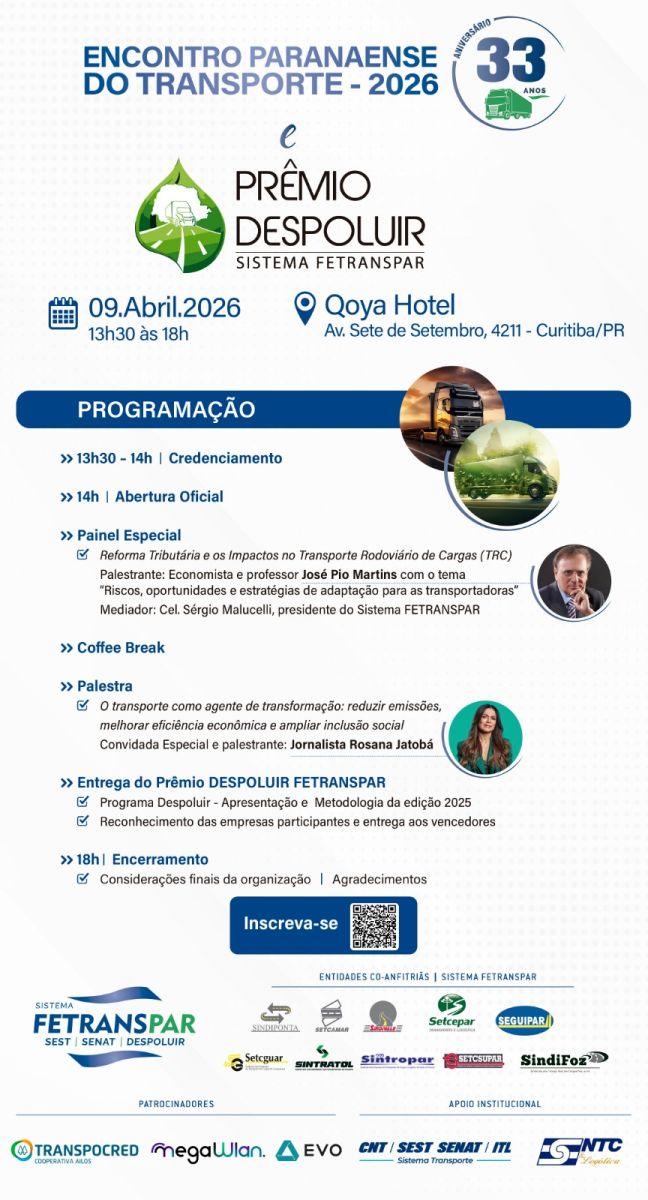 Encontro Paranaense do Transporte 2026 e Prêmio DESPOLUIR FETRANSPAR.
