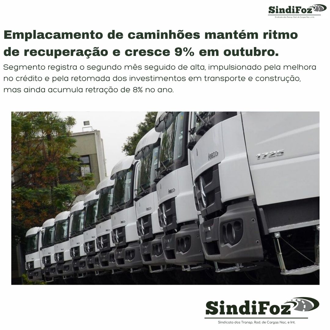Emplacamento de caminhões mantém ritmo de recuperação e cresce 9% em outubro.