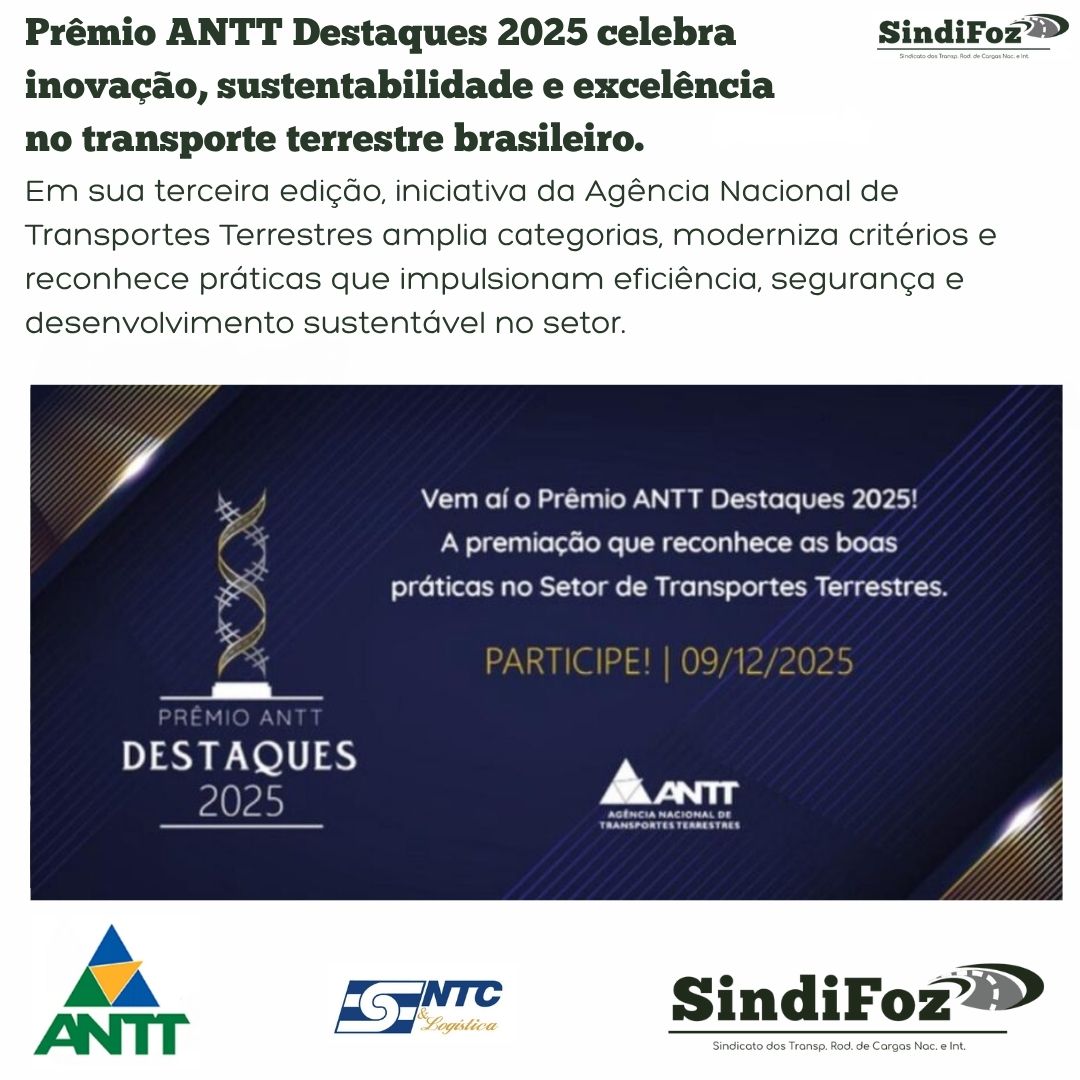 ANTT reforça inscrições do Prêmio Destaques 2025 e lança site oficial com novas categorias e critérios.