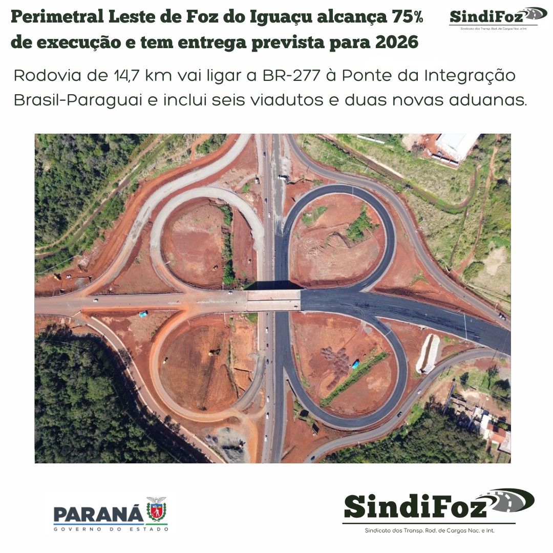 Perimetral Leste de Foz do Iguaçu alcança 75% de execução e tem entrega prevista para 2026, Rodovia de 14,7 km vai ligar a BR-277 à Ponte da Integração Brasil–Paraguai e inclui seis viadutos e duas novas aduanas.
