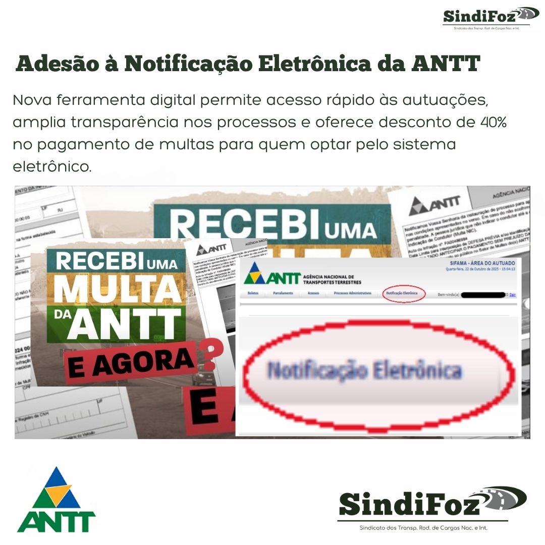 Adesão à Notificação Eletrônica da ANTT Facilidade, transparência e desconto de 40% no pagamento de multas.