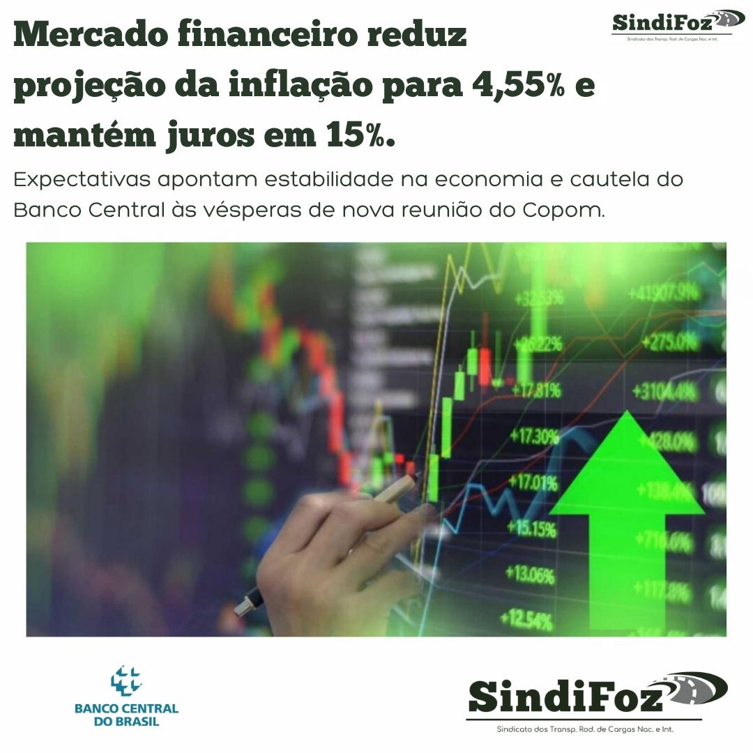 Mercado financeiro reduz projeção da inflação para 4,55% e mantém juros em 15%.