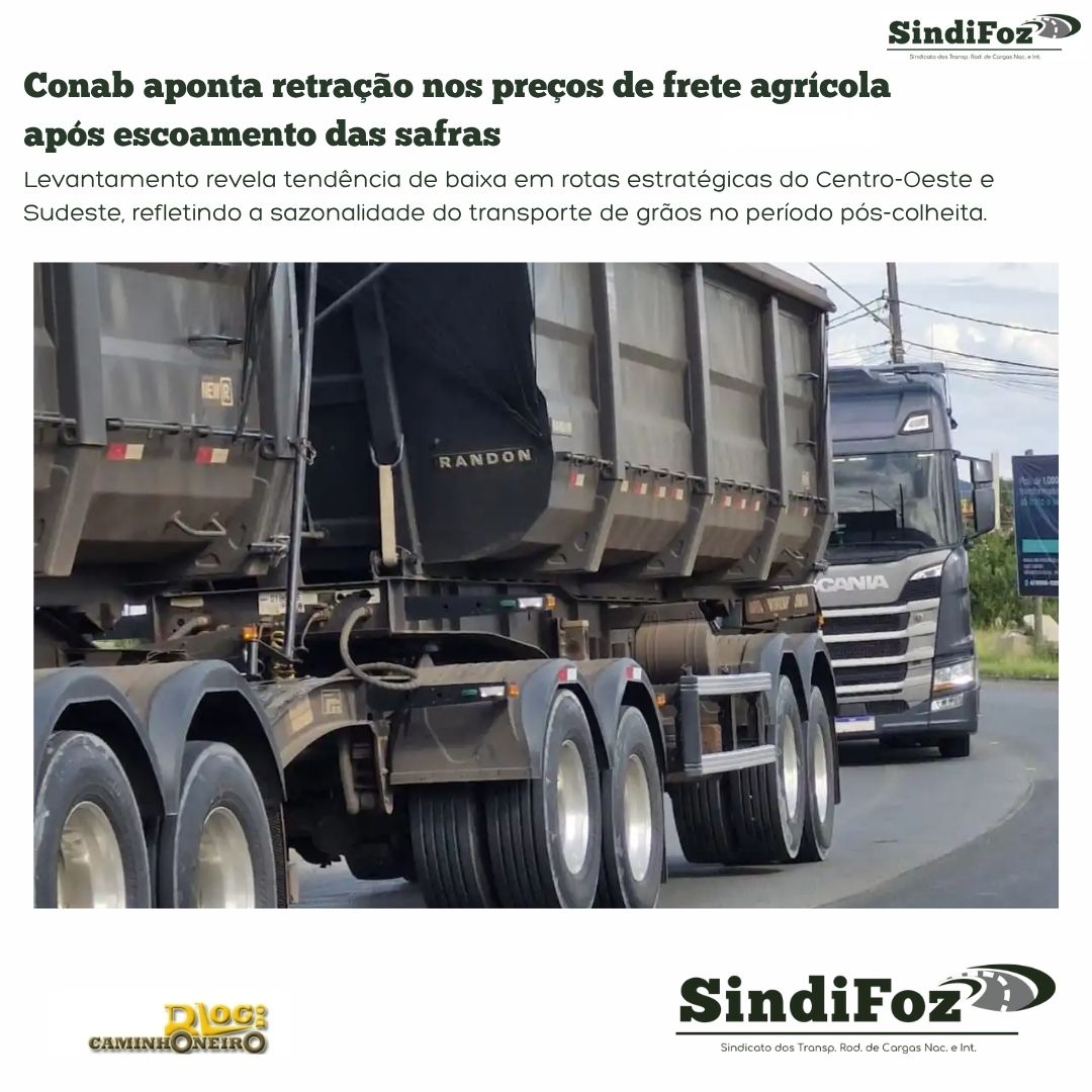 Conab aponta retração nos preços de frete agrícola após escoamento das safras.