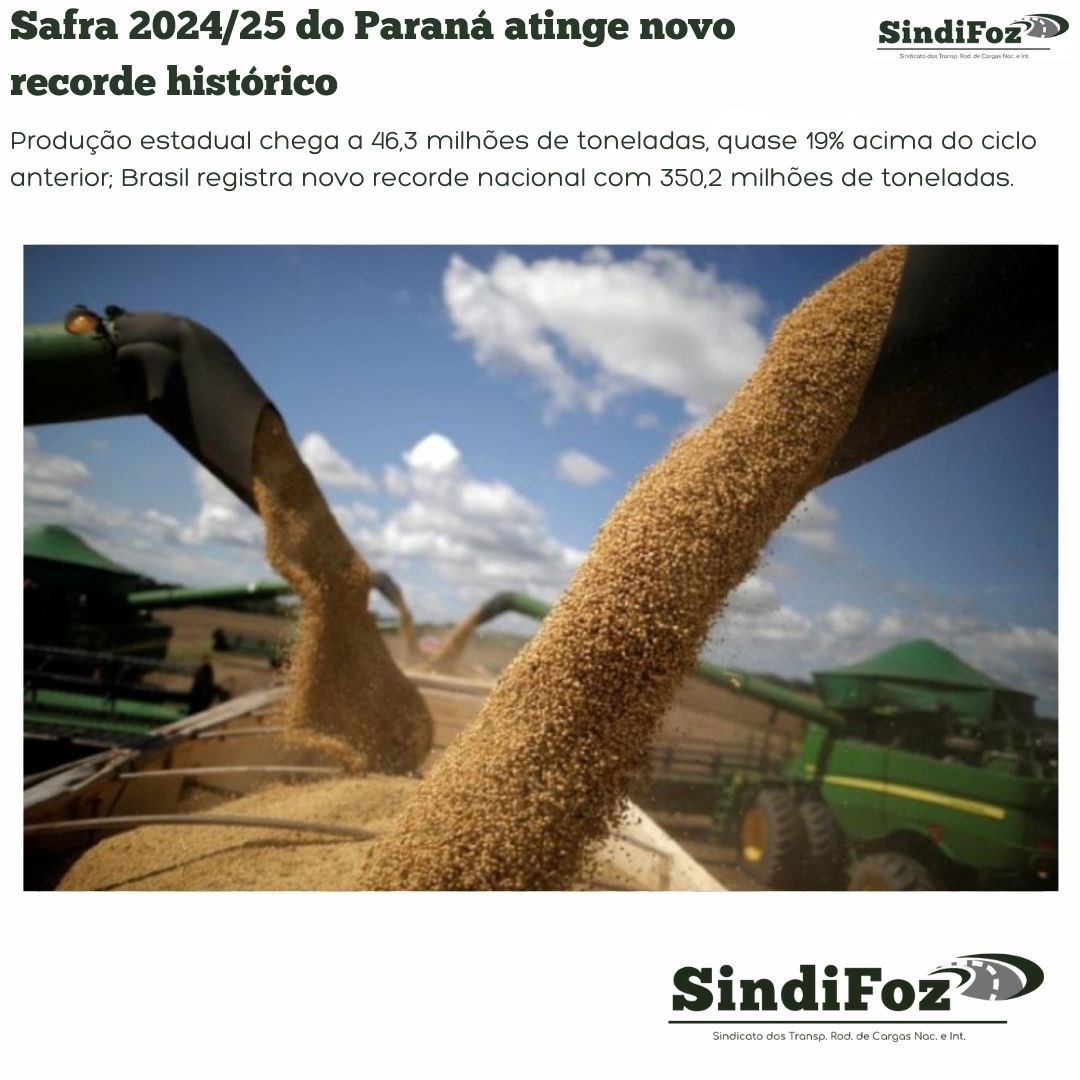 Paraná amplia produtividade e alcança safra recorde de grãos na temporada 24/25.