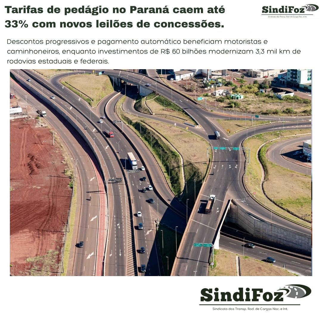 Tarifas de pedágio no Paraná caem até 33% com novos leilões de concessões.