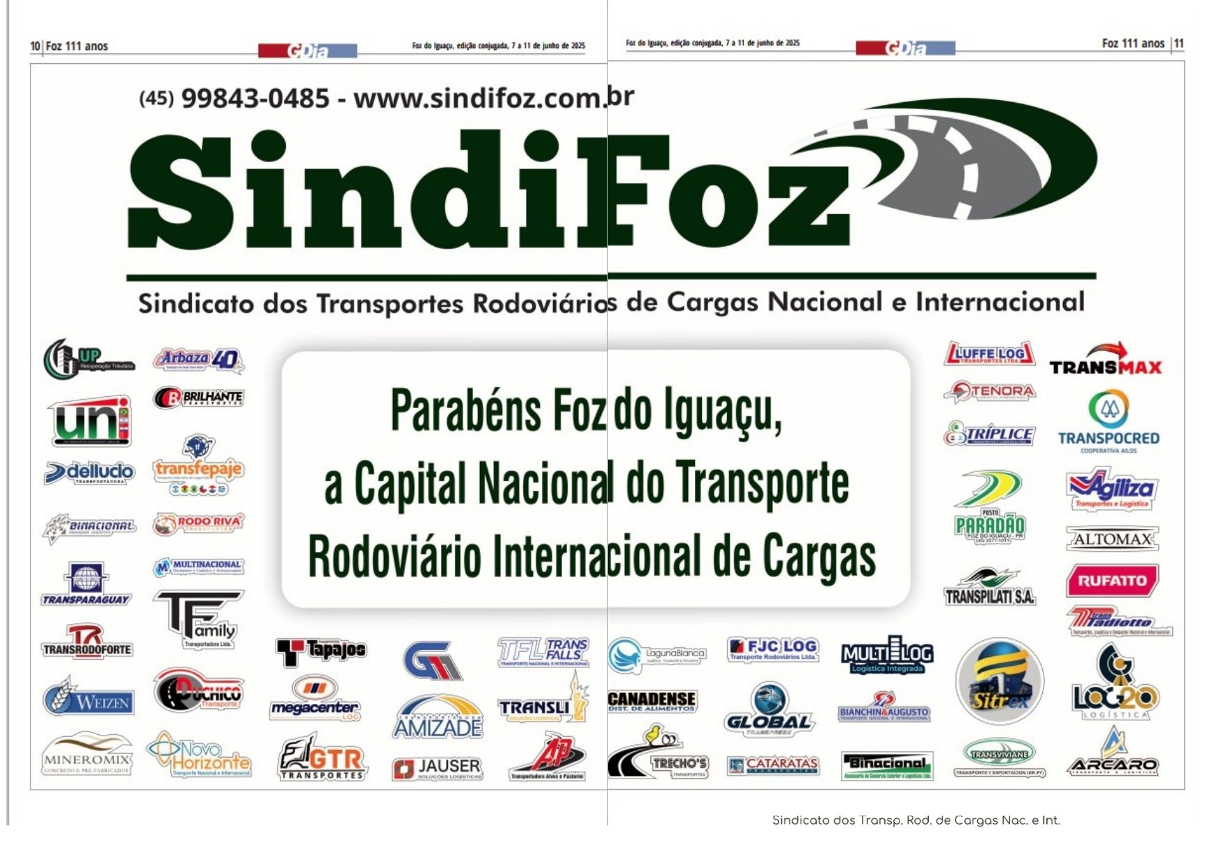 "O título reconhece a realidade que vivemos todos os dias. Foz do Iguaçu é uma cidade que vibra com o transporte internacional. Esse setor sustenta famílias, movimenta a economia e posiciona o município como referência em logística integrada.", declarou Celso Gallegario, presidente do SINDIFOZ.