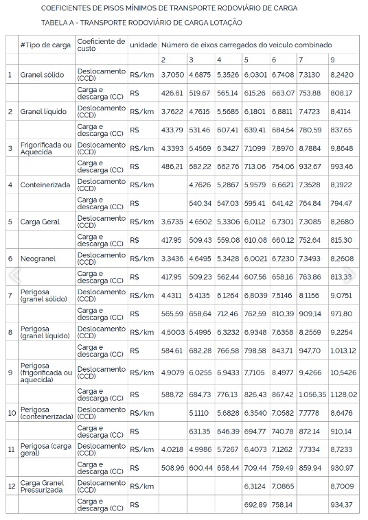 A medida, de caráter ordinário, está prevista na Lei nº 13.703/2018, que instituiu a Política Nacional de Pisos Mínimos do Transporte Rodoviário de Cargas. Seu objetivo é garantir maior segurança jurídica e condições mínimas de sustentabilidade econômica para caminhoneiros e transportadores autônomos.