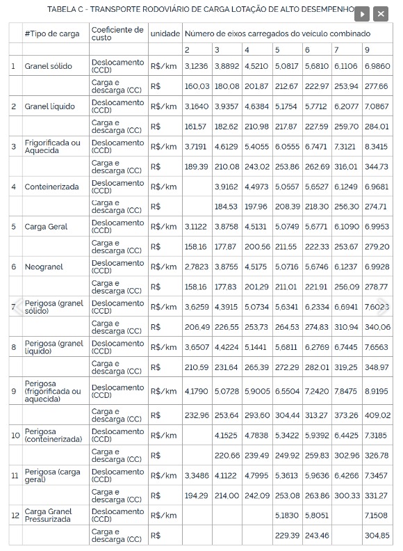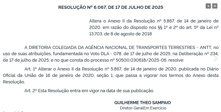 A nova tabela será publicada até o dia 20 de julho, conforme o calendário legal vigente. Por se tratar da aplicação direta da legislação federal, não há necessidade de audiência pública ou elaboração de Análise de Impacto Regulatório (AIR), como previsto nas Resoluções ANTT nº 6.020/2023 e nº 5.976/2022, além do Decreto nº 10.411/2020.