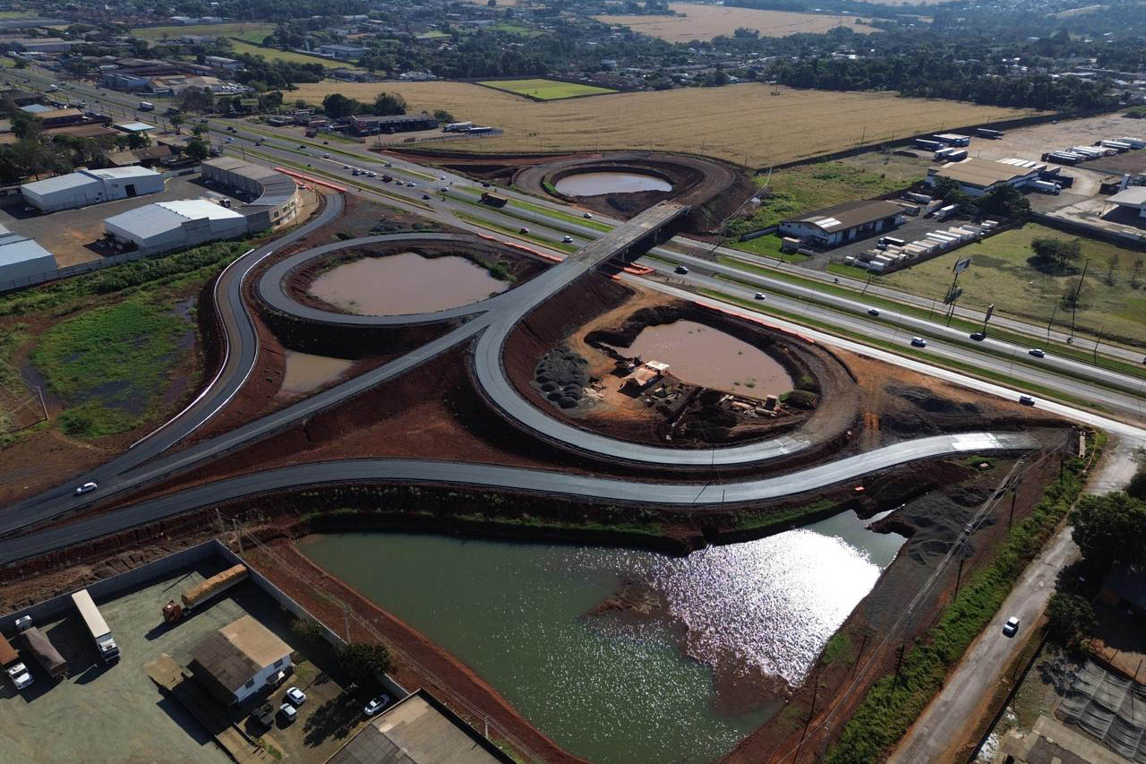 Entre os serviços em andamento, destaca-se a terraplenagem da interseção com a Avenida Felipe Wandscheer, já com viaduto construído, e a pavimentação, que em agosto liberou o tráfego na passagem inferior do viaduto da Avenida República Argentina. O entroncamento com a BR-469 também está em fase final de asfaltamento. As equipes atuam ainda na instalação de barreiras de concreto nos viadutos da BR-469, BR-277 e no acesso à Ponte Tancredo Neves.