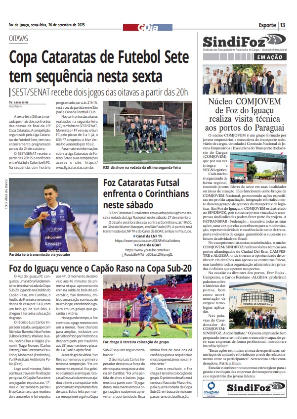 Cada núcleo é organizado regionalmente, reunindo jovens líderes do setor em suas localidades ou áreas de atuação. Eles funcionam como braços da COMJOVEM Nacional, promovendo ações específicas em prol da capacitação, integração e fortalecimento da nova geração de gestores do transporte e da logística. Em Foz do Iguaçu, o COMJOVEM está atrelado ao SINDIFOZ, pois somente jovens vinculados a empresas sindicalizadas podem fazer parte do projeto. A FETRANSPAR–Federação Empresas Transporte de Cargas do Estado do Paraná, incentiva todas as suas ações, uma vez que elas contribuem para a modernização, representatividade e excelência do setor de transporte rodoviário de cargas, garantindo a sucessão e o futuro da atividade no Brasil.