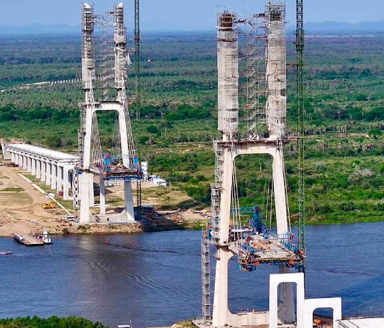 Ponte da Bioceânica se aproxima da união entre as margens do Rio Paraguai.