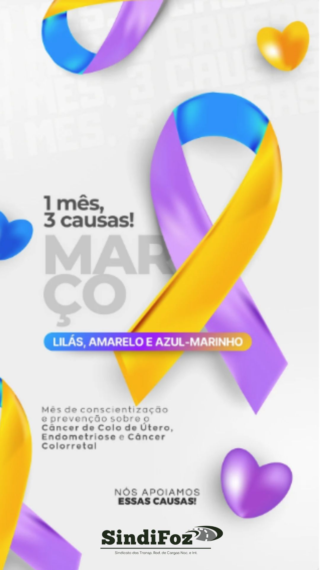 O mês de março é marcado por importantes campanhas de conscientização que reforçam a importância da prevenção, do diagnóstico precoce e do cuidado contínuo com a saúde. As ações buscam ampliar o acesso à informação e incentivar atitudes responsáveis que contribuem para a qualidade de vida da população.