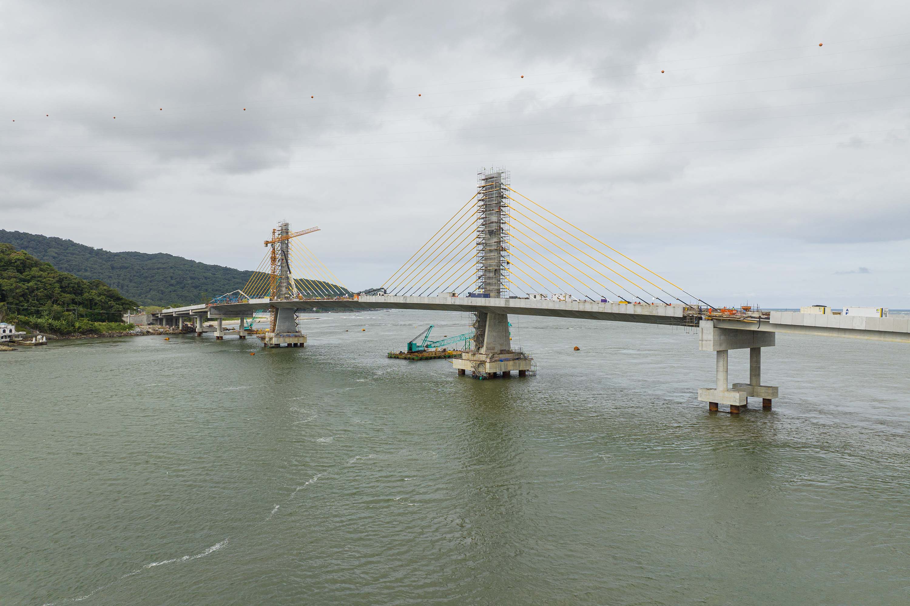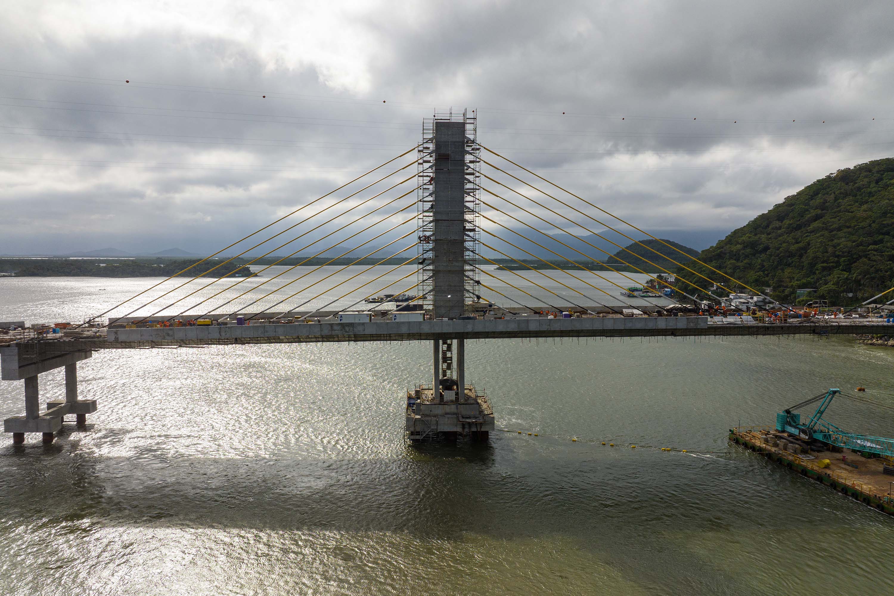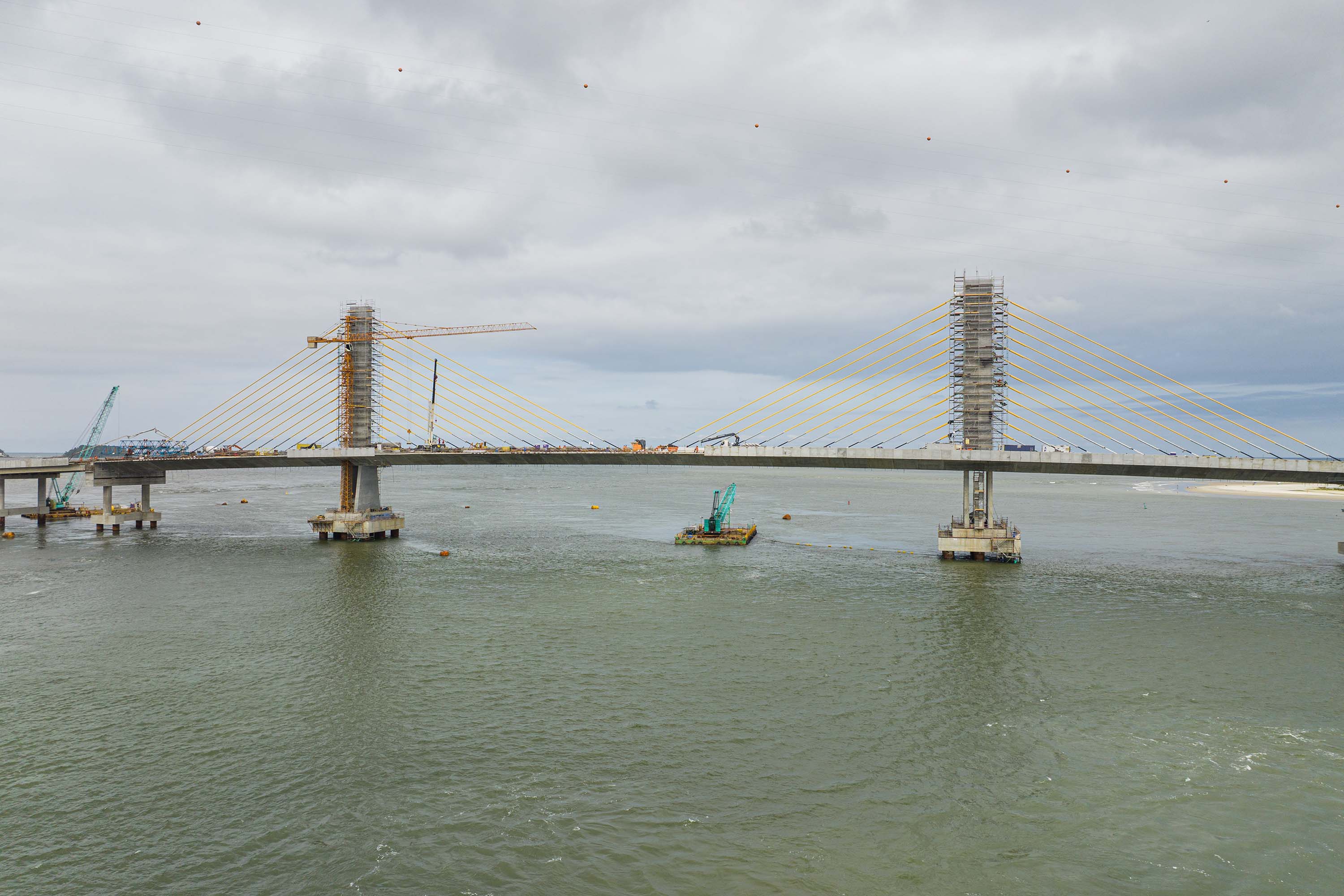 A ponte já conta com o trecho estaiado totalmente concluído, incluindo 12 pares de estais em cada mastro, um dos elementos mais emblemáticos do projeto. O fechamento do vão central, conhecido como “beijo da ponte”, marcou uma das etapas mais simbólicas da construção.